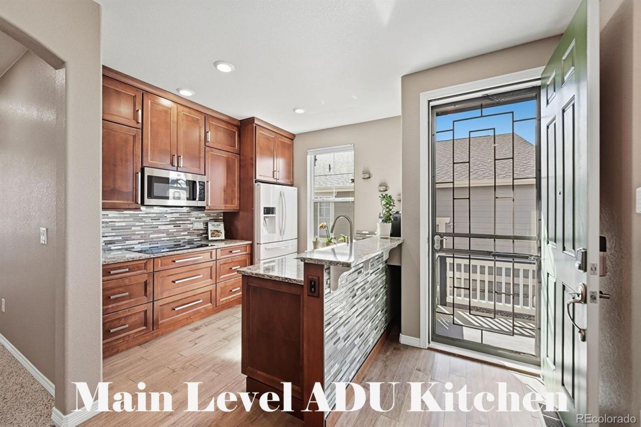 Rare Opportunity! THREE HOMES IN ONE!! Turnkey stunning 3-SUITE MULTI-GENERATIONAL / NEXT GEN/ IN LAW SUITE LENNAR SUPER HOME!! Approx. 6,358 ft on a Premium Walkout Lot, Backing to Open Space. THREE Private Entrances, THREE Full Kitchens, And THREE Laundries. Ideal for Multi-Gen Living, rental income or Investment opportunity. ***PRIMARY HOME (Approx. 3,253 ft) Features 2 Car Garage, Large Gourmet Kitchen w/ expansive Granite Island, Open Living & Dining, Private Deck, 5 Bedrooms Upstairs, Large Loft, Upper Laundry. Private Deck Overlooking Open Space. ***ADU SUITE/APARTMENT, (Approx. 986 ft )Ranch Style, Includes 1 Car attached Garage, Customized Kitchen w/ Quartz Counters,42 Cabinets, Cooktop, Convection Microwave, Crushed-Granite Sink, separate Dining & Living areas plus Bedroom, WIC w/ Elfa System, Laundry, Full Bath w/ Double Sinks & Private Deck. Views Overlooking Open Space. ***WALK OUT BASEMENT APARTMENT( Approx.1000 ft) Offers Customized Kitchen w/ Silestone Counters, Island, Gas Cooktop, Convection Microwave, Sub-Zero Fridge, Office, Bedroom w/ Elfa Closet, Cedar Ceiling Closet, Full Bath Includes Heated Tile Floor, Marble Countertop, Steam Shower w/Aroma Therapy, Double Sinks, Bidet Toilet, Laundry, Automation Lights. Large Walkout-Stained covered Concrete Patio and Plenty of Space for Entertaining. ***Basement Common Area Game Room Approx. 800 ft, Accommodates An 8 Pool Table, Space for Playing Games, Perfect for Entertaining Family & Friends. Bathroom, Storage rooms. Wet Bar. Ext. Features: Stained Concrete Patio w/ 7 x 13 Flagstone Gas Fire Pit w/ Flagstone Seating Area, Pine trees for privacy surrounding the Fire Pit, 7-Person Hot Tub. Stained Concrete Stairs Provide Access to Backyard, Matching Storage Shed with heat and electric and Mature Landscaping. New IR roof. Raised Garden Bed. Easy Access to Over 870 Miles of Biking Trails & Parks, Douglas County Schools, DTC Business Park, Parker & Sky Ridge Hospitals, Quick Access to I-25 & E-470.