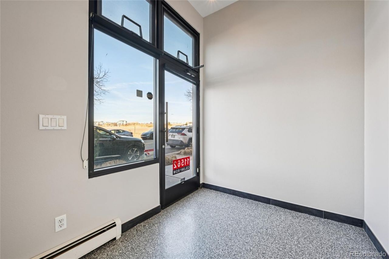 Experience a rare and versatile opportunity in the heart of Broomfields vibrant Arista neighborhood with this stunning mixed-use townhome. This unique property is designed for the modern live-work lifestyle, featuring a dedicated storefront or commercial space on the ground level. Complete with a convenient half-bath and its own separate street entrance, this space can be easily locked off from the rest of the home, providing a professional setting for a small business, creative studio, or office. For residential use, a separate private entrance leads you into a home where contemporary design meets effortless functionality, further enhanced by fresh paint throughout and a brand-new water heater for total peace of mind.The second level serves as the social heart of the home, boasting an expansive open-concept layout where the living, dining, and kitchen areas flow together seamlessly. The gourmet kitchen is a showpiece of modern style, featuring high-end stainless steel appliances, granite countertops, sleek cabinetry, and a large island with breakfast bar seating. The adjoining living room opens onto a private balcony, perfect for enjoying the Colorado air, while a stylish 3/4 bath completes this level for guest convenience.On the third floor, you will find a thoughtful double-primary layout, where both spacious, sun-drenched bedrooms feature their own private en-suite bathrooms. The main primary suite is a true sanctuary, offering a spa-like bath and its own private balcony with scenic views. This home is packed with modern essentials, including an attached two-car garage that has been upgraded with professional epoxy flooring and an electric vehicle charger. Perfectly situated near the areas best shopping and dining, and with immediate access to Highway 36 for easy commuting to Denver or Boulder, this property offers an unbeatable combination of luxury, location, and professional potential.