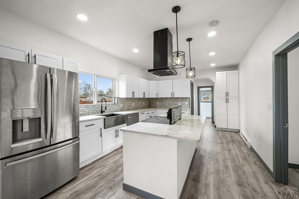 A fully remodeled tri-plex offering flexibility, functionality, and immediate opportunity in Pueblo's Eastside. Situated on a corner lot with two separate buildings, the property includes two main-level 3-bedroom units and one upper-level 2-bedroom unit, each with private entrances and updated interiors featuring new flooring, paint, and modern kitchens that flow into open living and dining areas. Improvements include updated electrical, plumbing, and separate electric meters, supporting efficiency and ease of management. With 8 bedrooms, 4 bathrooms, off-street parking, and fenced outdoor space, the layout allows for multi-generational living, owner-occupancy with supplemental income, or full investment use. Vacant and ready for immediate placement, this property offers a rare combination of condition, scale, and versatility.