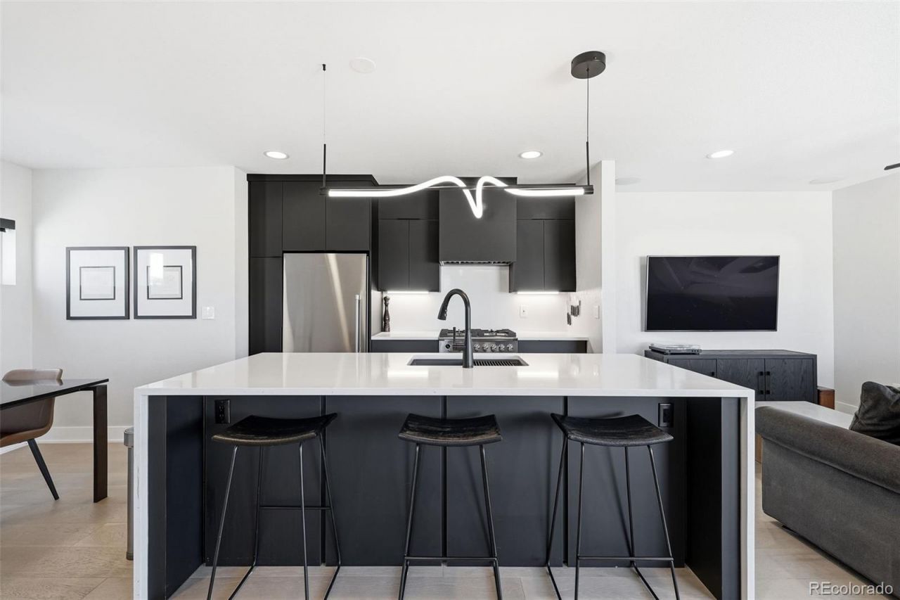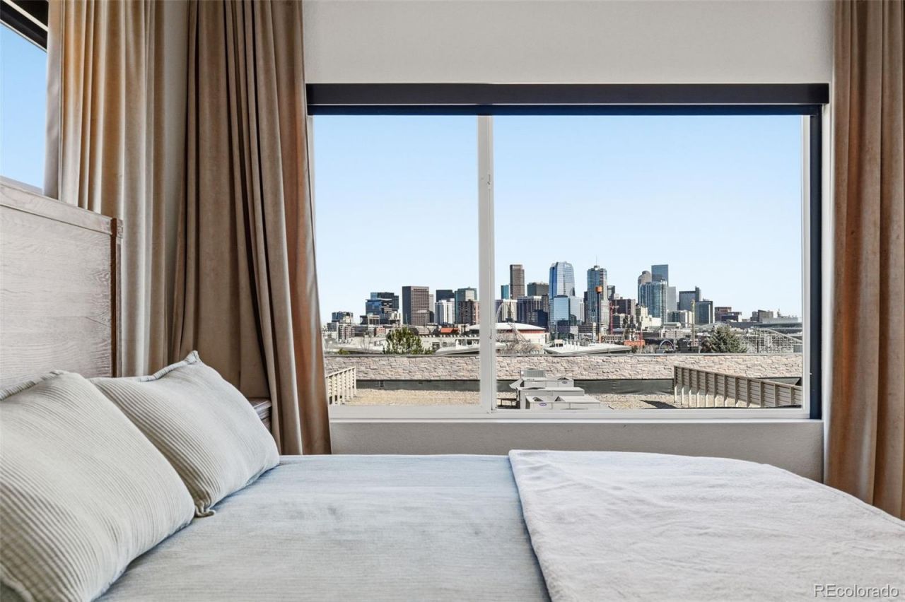 Expansive City Views from this sophisticated modern end-unit residence in Jefferson Park, blending tranquility with prime urban access. The private rooftop deck delivers unobstructed panoramic views of the city skyline, Empower Field, and Jefferson Park?perfect for entertaining. The open-concept great room features elegant upgrades and abundant natural light, fostering a bright, inviting atmosphere. The gourmet kitchen includes quartz countertops, a large island with seating, gas range, dining area, and generous counter space. The primary suite offers a custom built-in closet and a luxurious spa-inspired bath. A secondary bedroom provides its own private ensuite bath. Additional features include a convenient mudroom entry with storage and direct access to the attached two-car garage with extra storage. Located steps from Jefferson Park, shops, restaurants, and public transit, the home offers exceptional convenience all while positioned on the edge of downtown with easy access to the Highlands, LoHi, LoDo and the Mountains. This rare opportunity in one of Denvers most sought-after neighborhoods should not be missed.RECENT UPGRADES (since 2021) include hardwood flooring, new Fisher & Paykel appliances, soft-close cabinetry, quartz countertops with waterfall edge, updated lighting, a remodeled primary bath, built-in speakers, custom closet systems, motorized roller blinds, and added garage storage.
