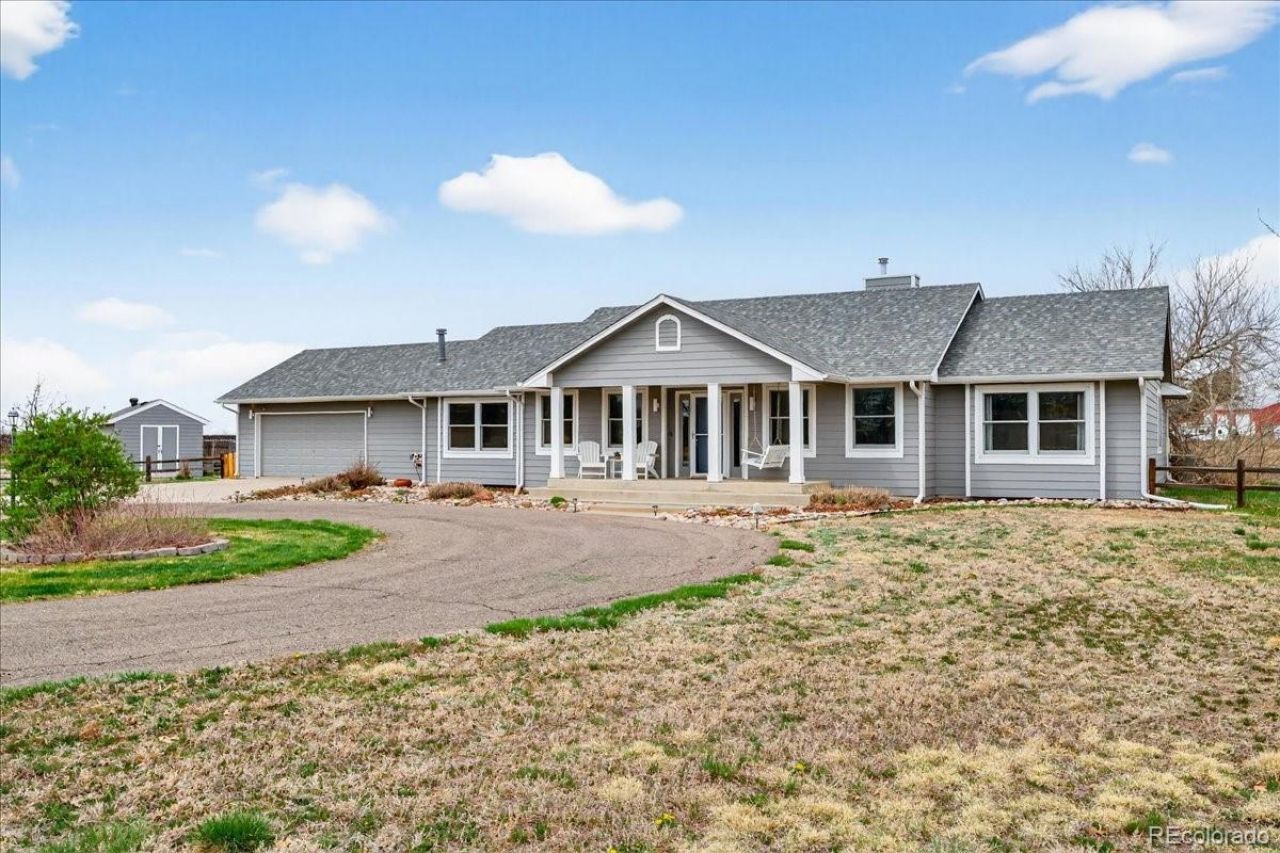 Set on over 2.5 fully fenced acres with unobstructed, panoramic Front Range views, this one-owner property showcases true pride of ownership throughout. Meticulously maintained for the past 30 years, the home offers over 2,100 square feet of main-level living with a functional, thoughtfully designed floor plan and timeless updates throughout?making it completely move-in ready with no deferred maintenance. Interior highlights include a warm and inviting gas fireplace, spacious living areas, and a private primary suite featuring a five-piece bath with a jetted tub. Every space has been carefully updated and exceptionally well cared for. The outdoor setting is equally impressive, featuring a covered porch, expansive patio, built-in hot tub, and a private pond?perfect for relaxing or entertaining while taking in the sweeping mountain views. Additional amenities include a heated shed and a secondary outbuilding, offering ample space for storage, hobbies, or workspace. With convenient access to shopping, dining, and everyday amenities, this property offers a rare combination of acreage, condition, and standout Front Range views.