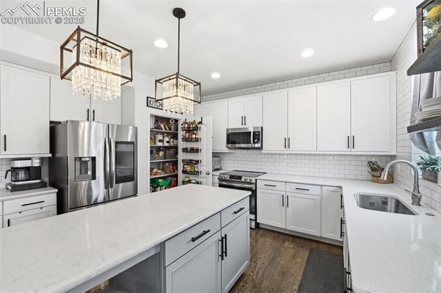 Welcome to 2614 Equine Ct — a beautifully upgraded home with mountain views, modern style, and room for everyone to relax and enjoy. Tucked away in the Hannah Ridge neighborhood, this spacious 5-bedroom, 4-bath home offers over 3,000 sq.?ft. of thoughtfully designed living space, a 2-car garage, and stunning views of the Front Range and Pikes Peak. Inside, you’ll find an airy open floor plan filled with natural light, upgraded lighting throughout, and luxury touches everywhere you look. The kitchen is a true highlight — featuring a custom-built island, granite countertops, stainless steel appliances, and a newer microwave and oven. It opens seamlessly into the dining area and living room, creating the perfect setup for cooking, hosting, and everyday living. Upstairs, the primary suite offers a private retreat with a spa-style bathroom and a large walk-in closet. Three generous bedrooms, a full bath, and a spacious laundry room complete the upper level. Downstairs, the finished basement adds a huge Open Space to convert however you see fit. A walk-out basement offers access to the well-thought-out backyard. There are 2 additional bedrooms on this level as well as a full bathroom. This area is great for entertaining, overnight guests, or just unwinding at the end of the day to watch a movie or study. Now, step outside to enjoy Colorado living at its best. The backyard features a partially covered patio, an enclosed area with low-maintenance turf lawn for pets, children, or anything you'd like to keep contained. There is a custom-built gated area to hide trash containers while keeping the outdoor space clean and welcoming. With its convenient location near shopping, restaurants, and schools, this move-in-ready home combines comfort, upgrades, and spectacular mountain views—all in one perfect package.