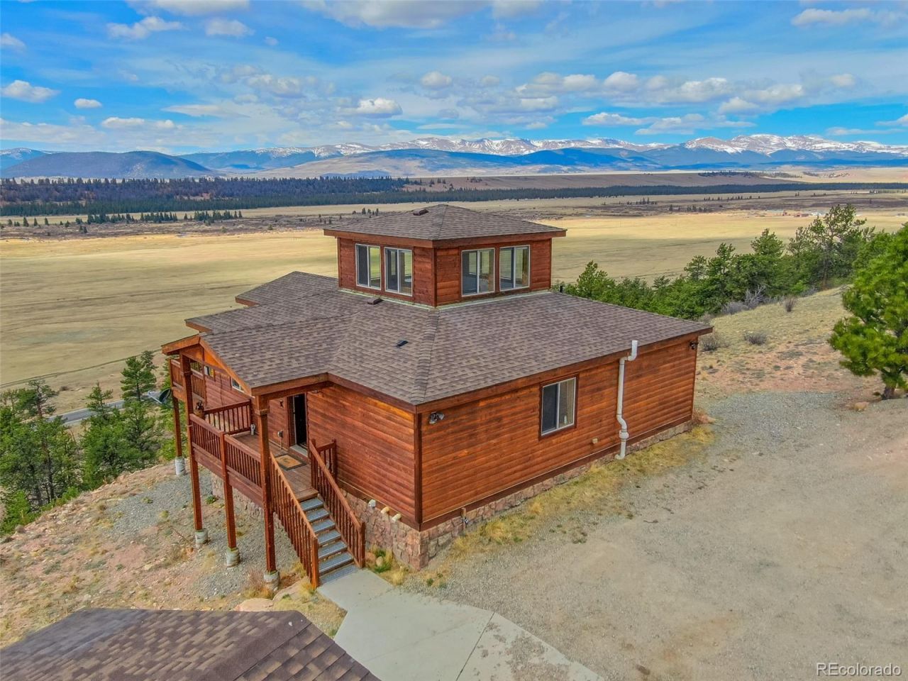 6.7 acres featuring majestic, unobstructed mountain views and breathtaking sunsets. This custom home showcases hand-planed wood plank finishes, granite countertops with buffed chiseled edges, pine beetle wood ceilings and high-end stainless steel appliances. Designed for comfort and enjoyment, the home offers 4 bedrooms, 3 bathrooms, a spacious game room with pool table, and a unique observation tower complete with a telescope. Cozy up by the gas fireplace or enjoy the efficiency of in-floor heating. Expansive windows fill the home with natural light and are complemented by custom window coverings. A radon mitigation system is already installed for added peace of mind. Ideally located for outdoor enthusiasts, residents can enjoy private fishing access along the South Platte River, explore nearby Pike National Forest, or take a short drive to world-class skiing and snowboarding in Breckenridge.