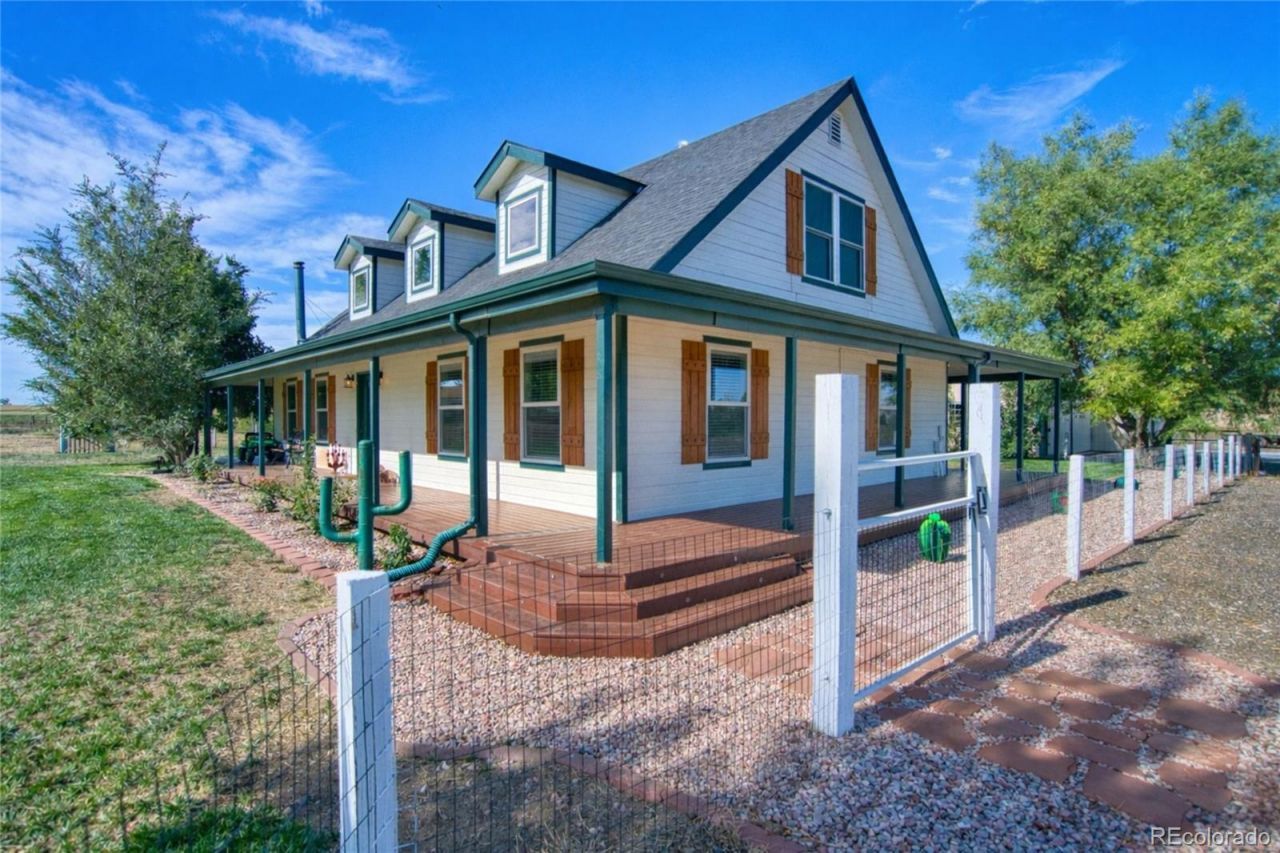 Welcome to country living without sacrificing convenience. Situated on 5.22 acres & just on the outskirts of town, this 3 bed, 2 bath home offers the space, functionality & lifestyle that acreage buyers are looking for. Meticulously maintained & thoughtfully improved, this property checks nearly every box. The dream wrap-around porch, mature trees & beautifully landscaped fenced in yard are perfect for entertaining or simply enjoying the quiet of country life. Inside, the home is clean, warm & inviting. The living room features a wood-burning stove, while the oversized main level primary bedroom offers a true retreat w/an ensuite bath, jacuzzi tub & generously sized walk-in closet. The kitchen includes an island, newer refrigerator & sliding glass door opening directly to the backyard. Upstairs youll find 2 addtl bedrooms w/the bonus of a loft for extra living space. The detached 2-car garage includes an attached flex room great for an office, hobby space, or bunkhouse for guests. For those needing workspace or storage, the 2,200 sq ft heated shop is a mechanics dream. Designed w/functionality in mind, it has fully concreted floors, 220-volt service, air compressor lines throughout & a lean-to enclosed storage section for addtl vehicles. Horse owners will love the fully fenced front of the property w/ split pastures & newly built gated runs, lean-to sheds & automatic heated waterers. Other recent upgrades: fresh exterior paint, custom shutters, fiberglass windows, blinds, porch soffit w/ recessed lighting, new attic insulation & an extensive exterior watering system. Pride of ownership is evident throughout the home & property. With NO HOA & plenty of space for trailers, animals & equipment, this home offers the flexibility that rural buyers want while still keeping you close to everything. Just 15 min from Prairie Center shopping & amenities, approx 30 min to DIA. W/easy access to both I-76 & E-470, commuting & daily errands remain simple. Dont miss this one!