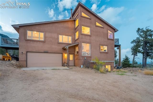 There are gated mountain communities, & then there is Crystal Park. Sitting high above the clouds outside Manitou Springs, CO, this is the kind of place people discover once & spend years trying to get into. A manned gatehouse, clubhouse, heated seasonal pool, trout pond, pickleball courts, & roads plowed & maintained around the clock. This particular home is one of the finest in the community, & photos genuinely don't prepare you for it. You have to stand in it. The home sits on nearly 3/4 of an acre backing directly to Pike National Forest, one of the largest national forests in the country. Private trails start at the edge of the property. A 10-minute walk gets you to a waterfall. A nearby stretch of forest is known for natural gemstones you can find yourself. & from the home, the views sweep 360 degrees across Pikes Peak, the Garden of the Gods, & the entire city of Colorado Springs laid out thousands of feet below you. Inside, the design is striking & modern without feeling cold. Walls of glass pull those views in from every angle. The great rm is anchored by a wood-burning FP w/a stacked stone surround & the kitchen & dining area flow right out to multiple decks. SS appliances, butcher block island, & pantry. The living rm has been updated w/new LVP flooring & LED can lighting, & a bedrm on this level has its own private deck & full bath w/dble vanity & tile flr & shower surround. Upstairs, the primary bedrm was designed around the views w/large picture windows & its own private deck. Vaulted ceilings w/transom windows, new accent wall, sitting area, walk-in closet, & new carpet. 5-piece bath w/jetted tub, mosaic tile, dble vanity, & passive solar design. Walk-out bsmnt adds a family rm w/9ft ceilings & a wood-burning stove, 3rd bedrm, laundry, & 3/4 bath. New central A/C, whole-home humidifier, radon system, dual-fuel generator, & 1,000gal propane tank. New carpet & newer vinyl windows throughout.