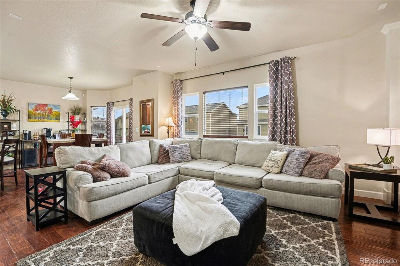 Welcome to this gorgeous semi-custom Windsor-built home, perfectly situated just a block from Stingray Park and offering a unique, highly functional floor plan! With brand-new carpet, a new water heater, and a Class 4 impact-resistant roof, this home blends beauty with long-term durability. The main level features rich wood floors, a dedicated office, and a bright, open living area with a cozy fireplace. The kitchen is designed for both style and efficiency, offering stainless steel appliances, granite countertops, a large pantry, and easy flow to the dining and living spaces. From the back of the home, enjoy peaceful mountain views! Upstairs, youll find a rare layout with four bedrooms, a convenient laundry room, and a loft space. The primary suite includes a luxurious 5-piece bathroom with a generous walk-in closet! Most secondary bedrooms also feature walk-in closets. The finished basement is an entertainers dream with a projector, screen, and even a climbing wall, plus a utility room and an additional storage room. The tandem 3-car garage provides workshop space and room for all your gear and has 220v. Stucco exterior and fully landscaped yards. Central AC! This is a beautifully maintained, thoughtfully designed home in a fantastic location ? move-in ready and truly one of a kind!